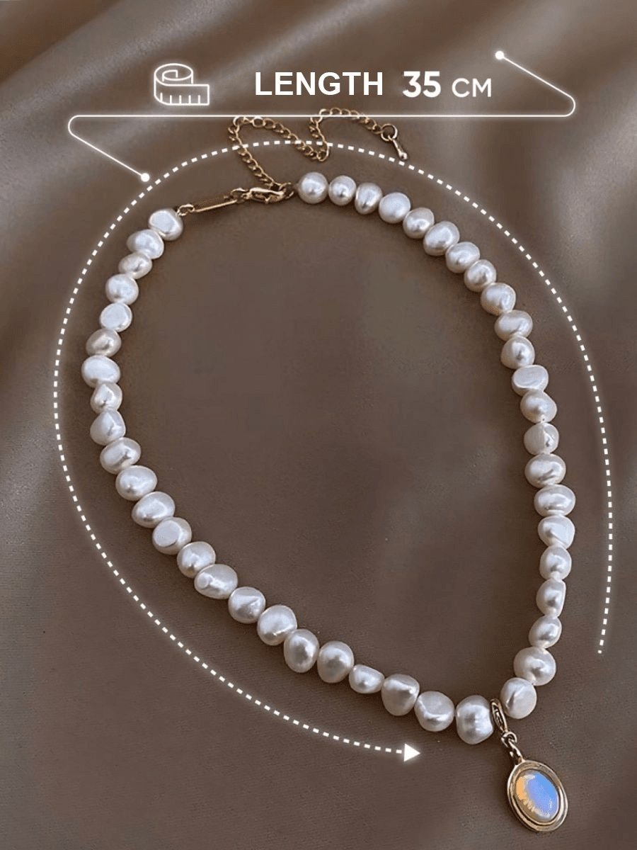 Opal Charm Pearl Choker Necklace with Adjustable Length