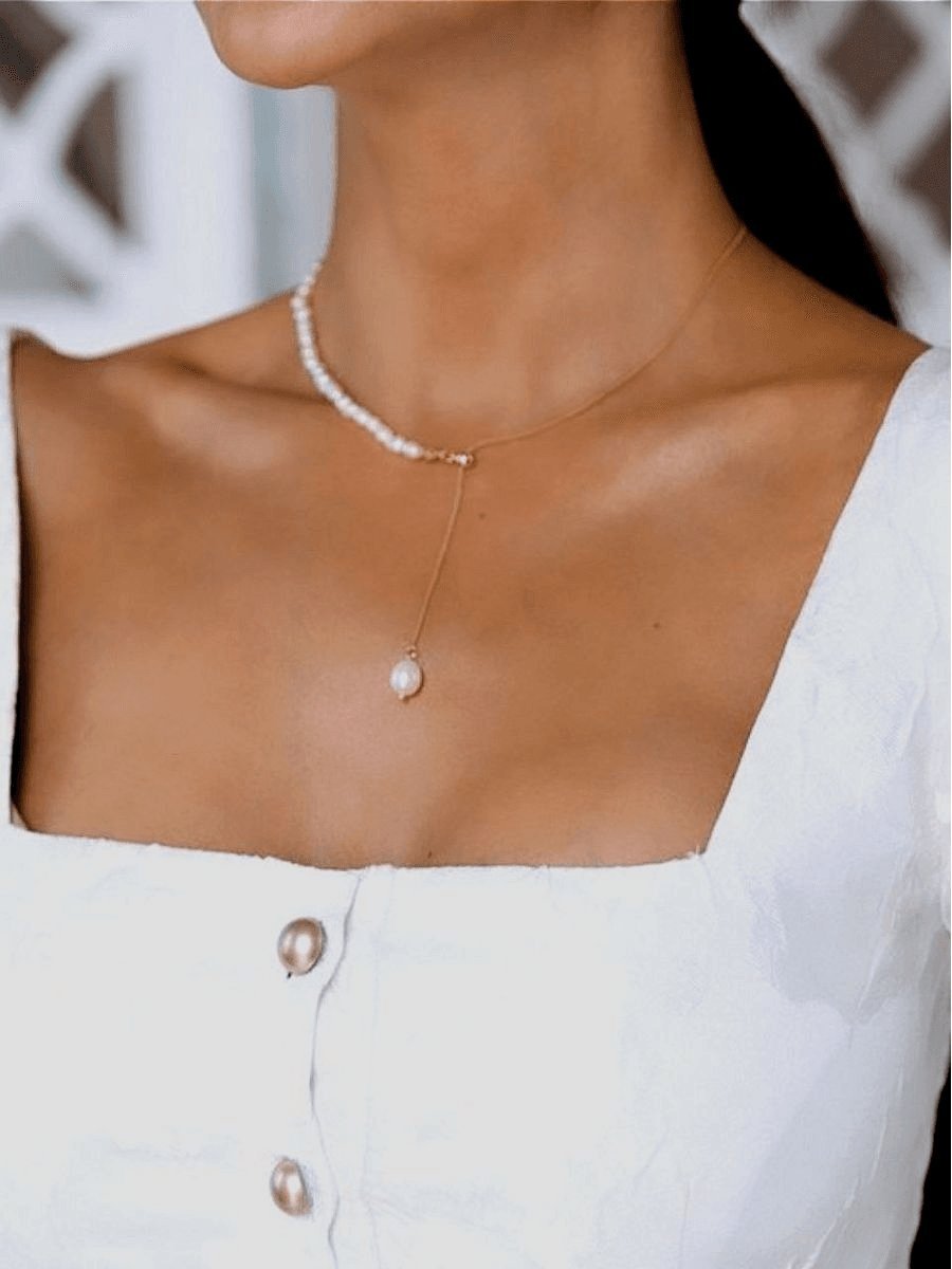 Elevate your style with this sophisticated and versatile pearl drop necklace. Designed to suit any occasion, this timeless piece is crafted with natural pearls and elegant gold-tone accents, combining classic charm with modern elegance.