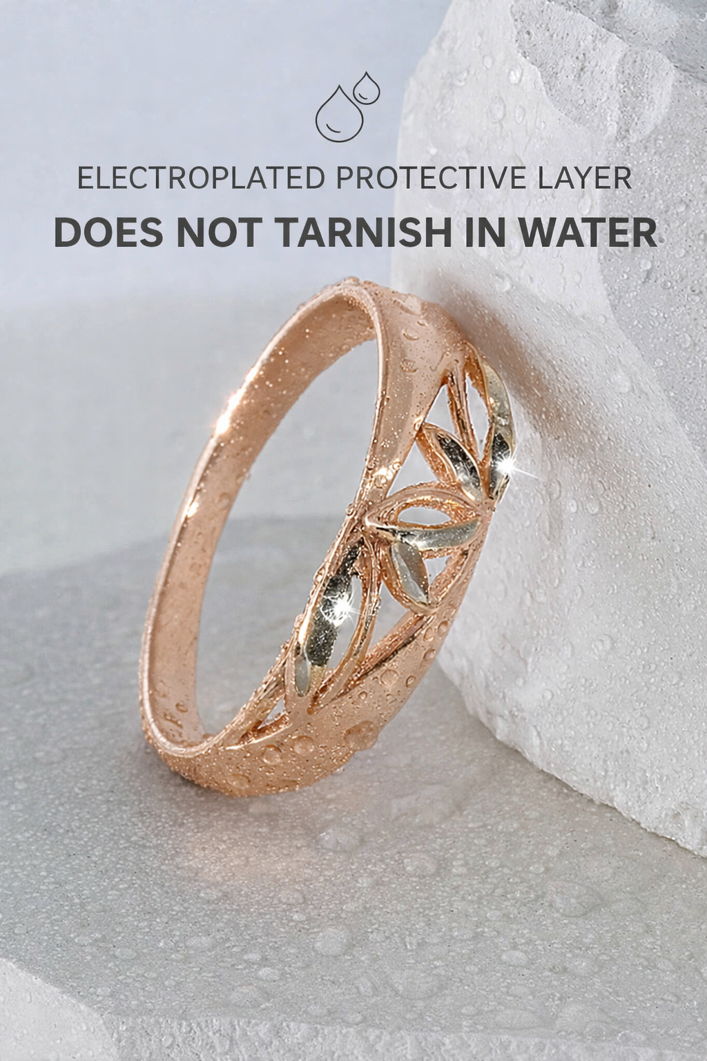 To preserve its shine, avoid contact with water, perfumes, and lotions. Gently wipe with a soft cloth after wear.