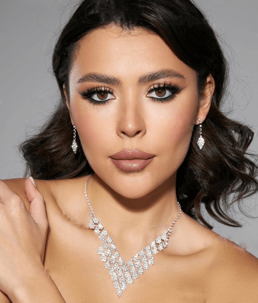 - Matching Earrings: Complementary drop earrings with matching crystal detailing for a cohesive and glamorous look.
