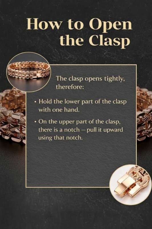 To preserve its shine, avoid contact with water, perfumes, and lotions. Gently wipe with a soft cloth after wear.